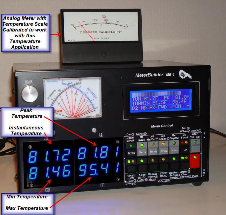 internal 7-segment LEDS and an analog meter with a temperature
